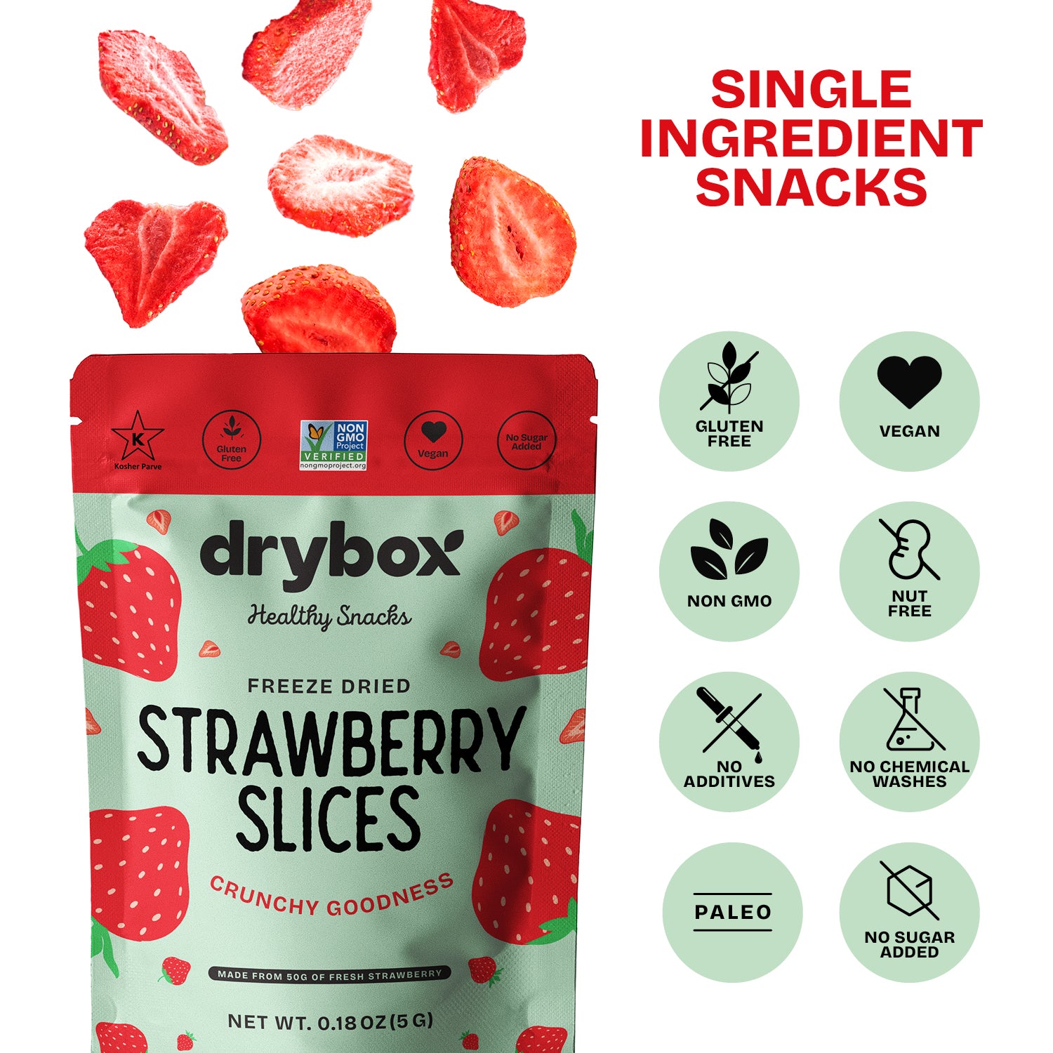 All Drybox dried fruit, chips, and powders are 100% pure fruit. No preservatives, no sugar, no dyes, no fillers. Organic, Raw, Vegan, Non-GMO, Gluten Free, Kosher (Pareve). Ripened by the warm Mediterranean sun.